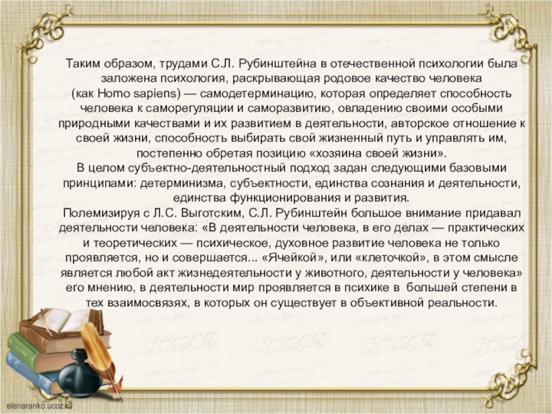 Слайд 7Таким образом, трудами С.Л. Рубинштейна в отечественной психологии была заложена психология,