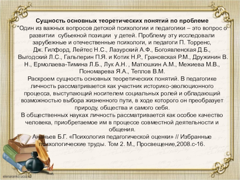 Ананьев Б.Г. «Психология педагогической оценки» // Избранные психологические труды. Том 2. М., Просвещение,2008.с-16.