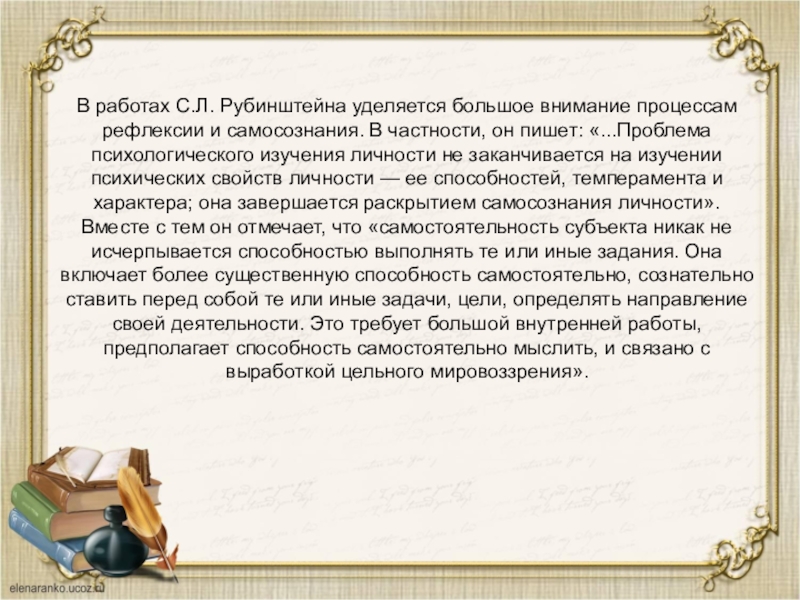 Слайд 10В работах С.Л. Рубинштейна уделяется большое внимание процессам рефлексии и самосознания.