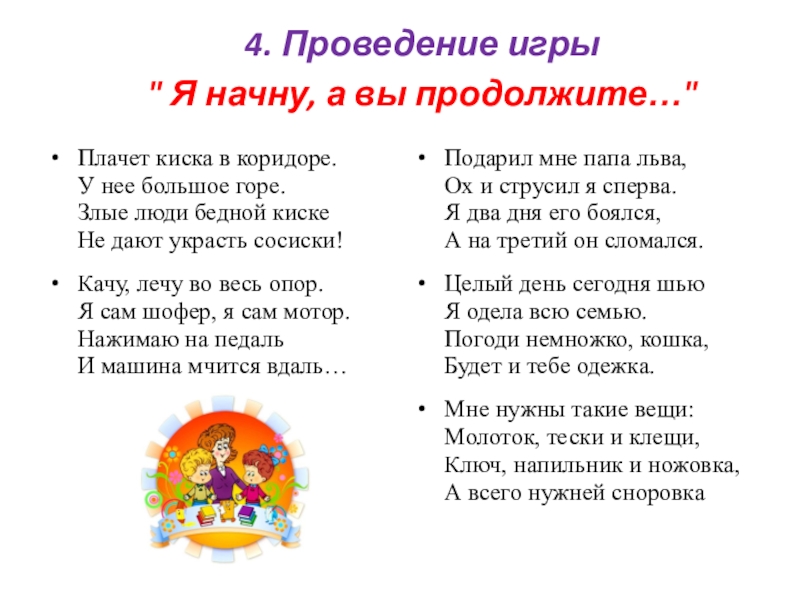 Раз-два, раз-два, раз-два-три! Вслед за мною говори: «В понедельник, вторник, среду в гости к бабушке поеду,