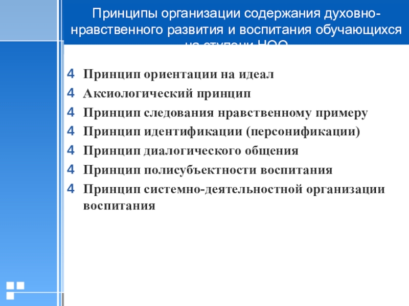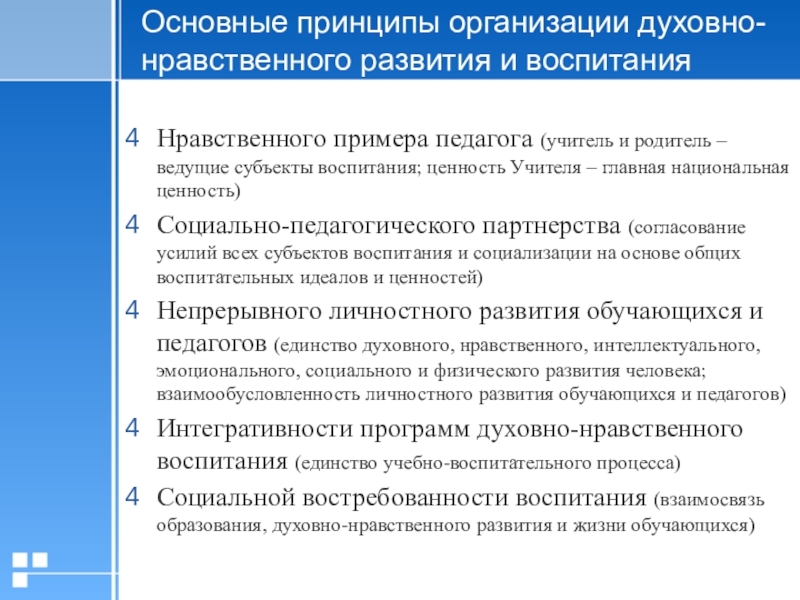 Слайд 9Основные принципы организации духовно-нравственного развития и воспитания