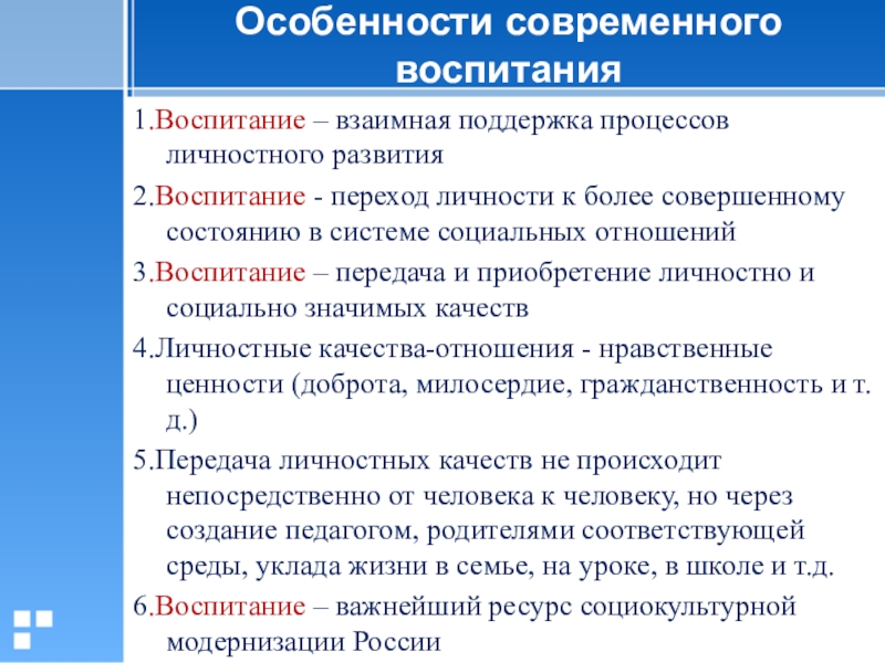 Слайд 6Особенности современного воспитания