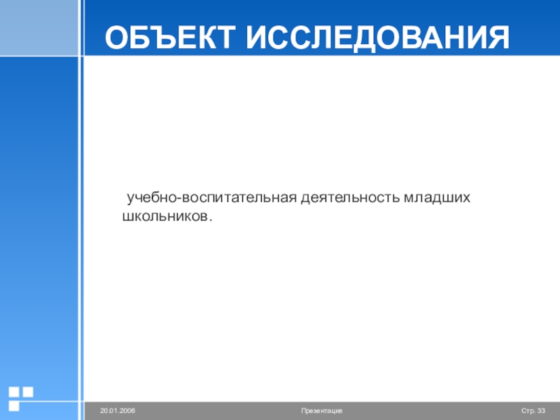 Слайд 33ОБЪЕКТ ИССЛЕДОВАНИЯ