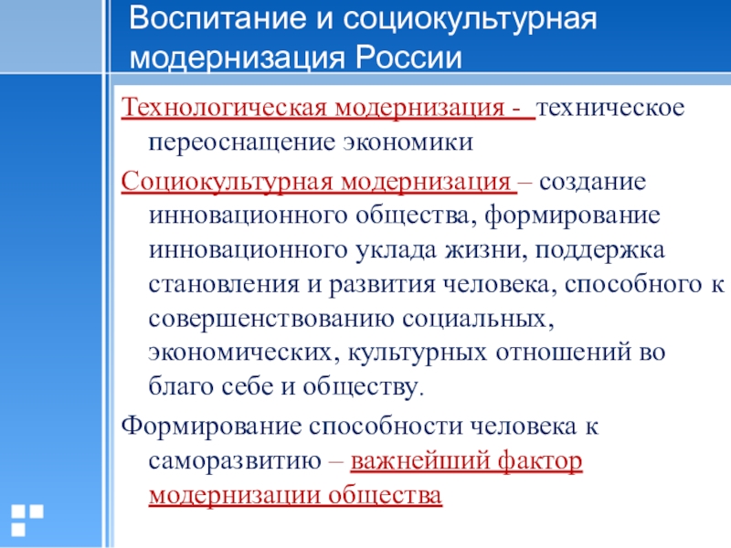 Слайд 5Воспитание и социокультурная модернизация России