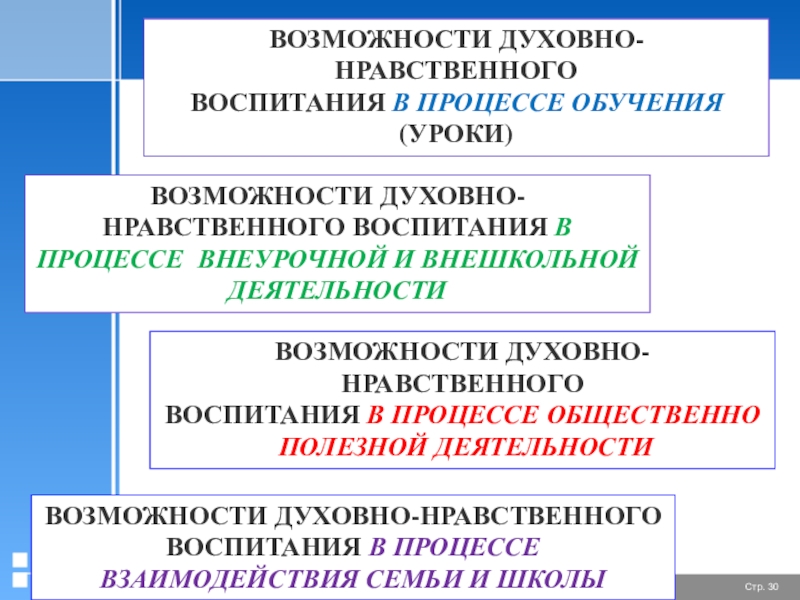 Слайд 30ВОЗМОЖНОСТИ ДУХОВНО-НРАВСТВЕННОГО ВОСПИТАНИЯ В ПРОЦЕССЕ ВЗАИМОДЕЙСТВИЯ СЕМЬИ И ШКОЛЫ