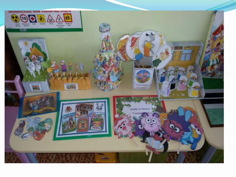 лет необходимы наборы готовых игрушек или заготовок и полуфабрикатов для изготовления объемных или плоскостных персонажей и элементов декораций настольного театра. Фигурки могут быть мелкого и среднего размера, сделаны из бумаги, картона, резины, пластмассы, пластизолей, папье-маше, тонкой фанеры. Образ театральных игрушек условный.