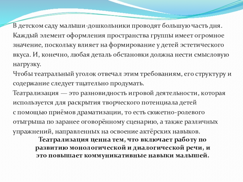 Чтобы театральный уголок отвечал этим требованиям, его структуру и