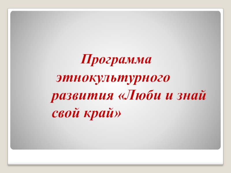 Программаэтнокультурного     развития «Люби и знай свой край»
