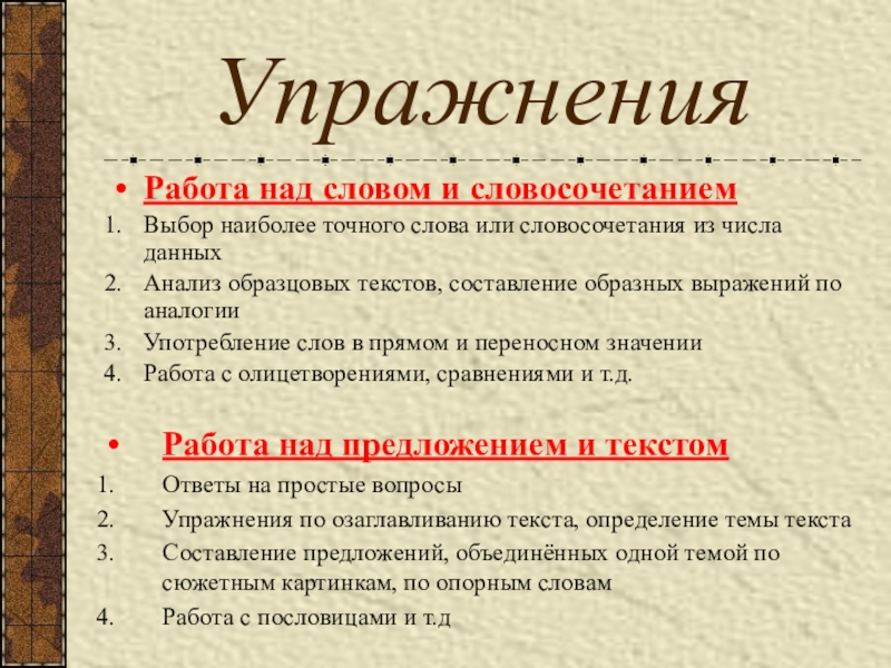 Работа над предложением и текстом