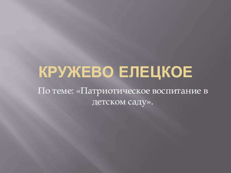 КРУЖЕВО ЕЛЕЦКОЕПо теме: «Патриотическое воспитание в   детском саду».