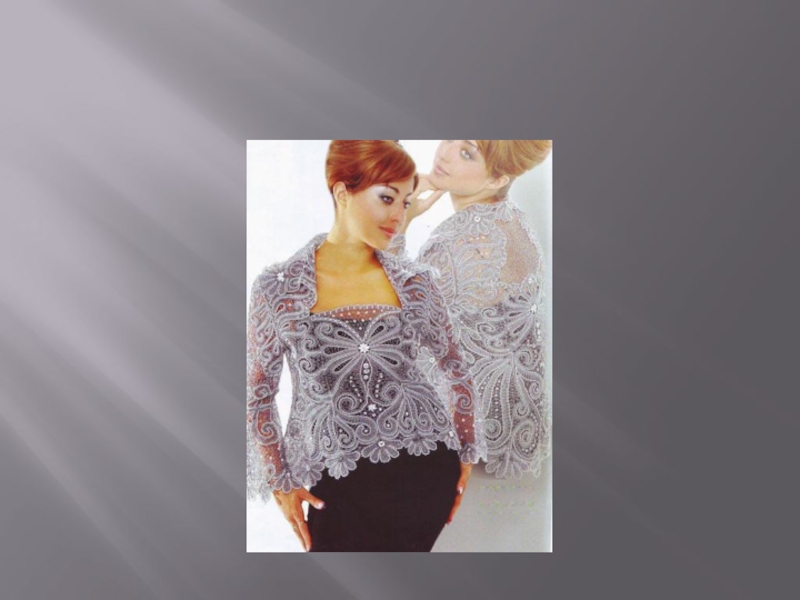 наименований продукции. В лучших традициях Елецкого кружевоплетения выполнены воротники, шляпы, пелерины, пальто, жакеты, блузы, шарфы, панно, салфетки, пастельное и столовое бельё.