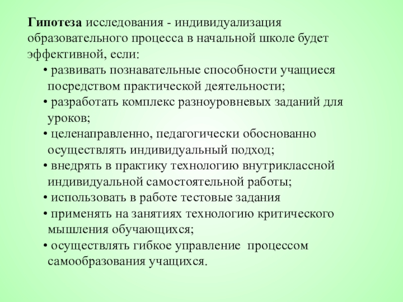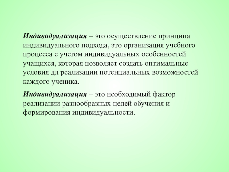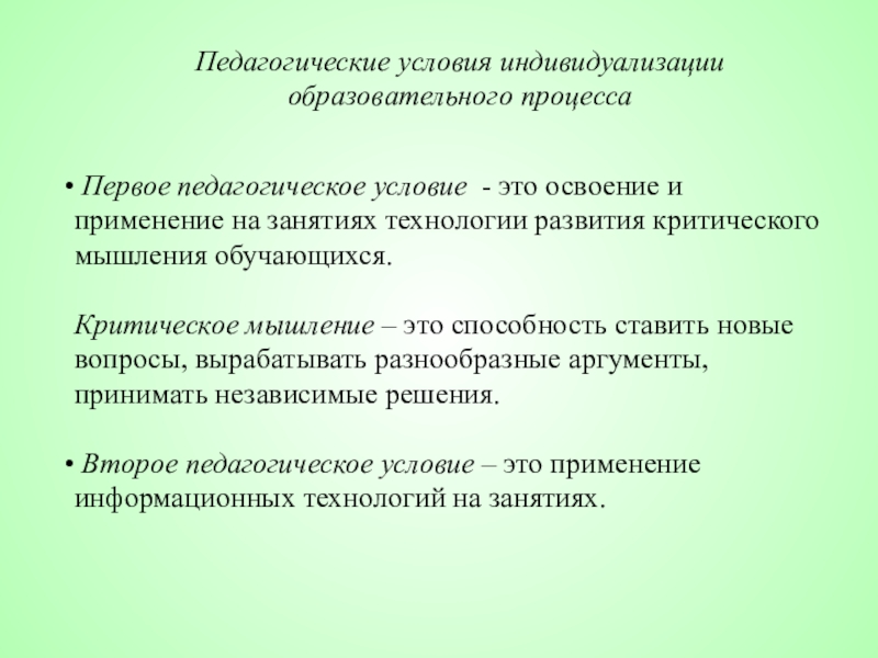 ПЕДАГОГИЧЕСКИЕ УСЛОВИЯ ИНДИВИДУАЛИЗАЦИИ ОБУЧЕНИЯ