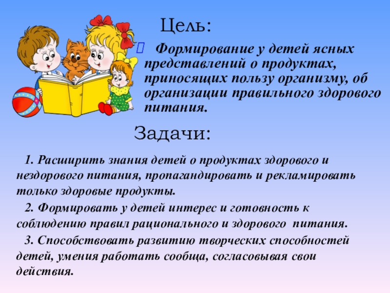 2. Формировать у детей интерес и готовность к соблюдению правил рационального и здорового питания.