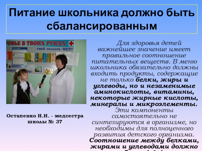 Питание школьника должно быть сбалансированным