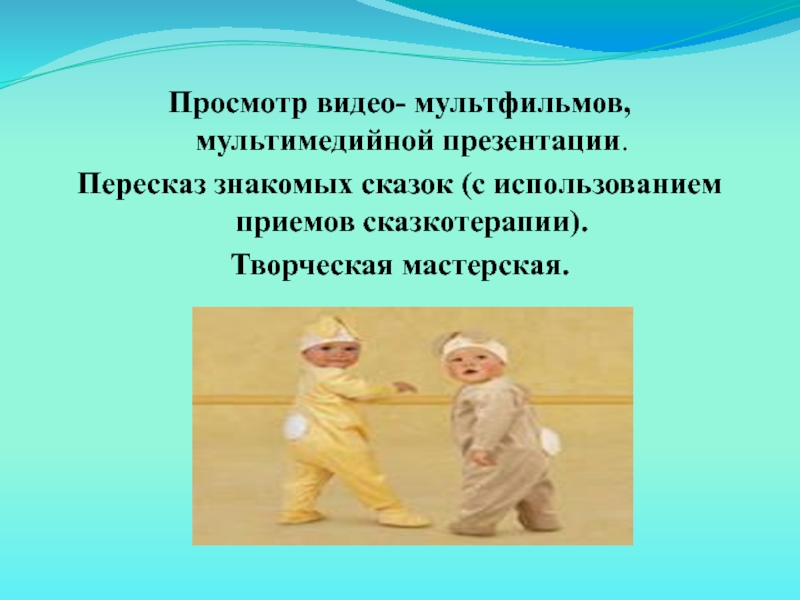 Слайд 12Просмотр видео- мультфильмов, мультимедийной презентации.