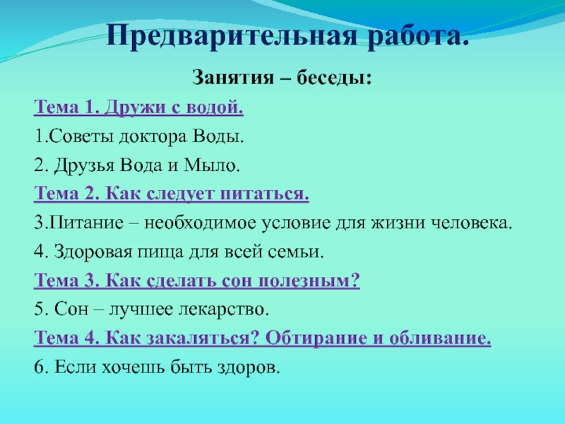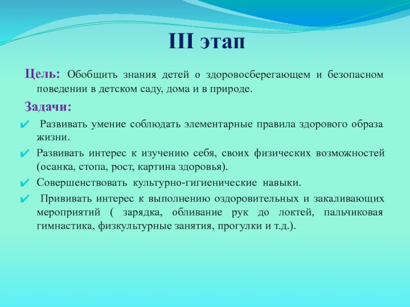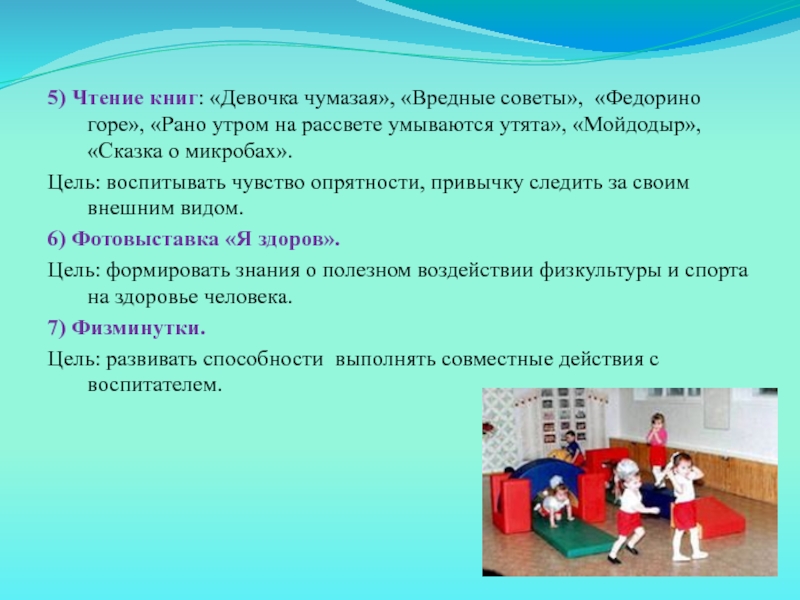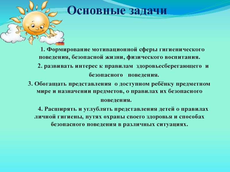 4. Расширять и углублять представления детей о правилах личной гигиены, путях охраны своего здоровья и способах безопасного поведения в различных ситуациях.
