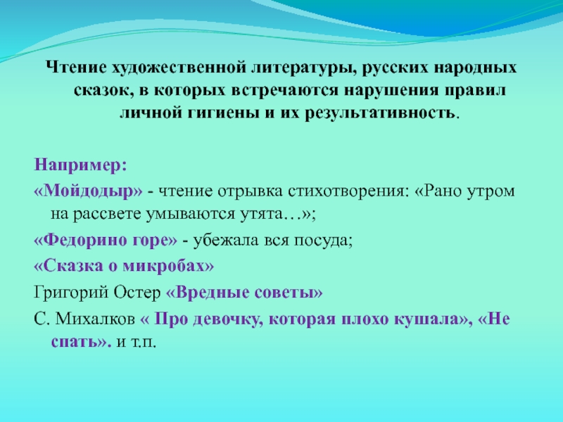 Чтение художественной литературы, русских народных сказок, в которых встречаются нарушения правил