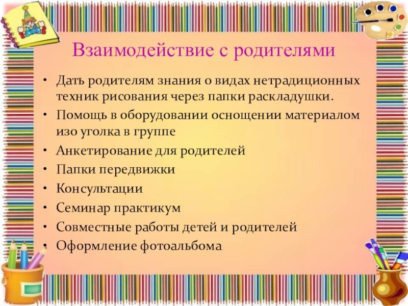 Слайд 8Взаимодействие с родителями