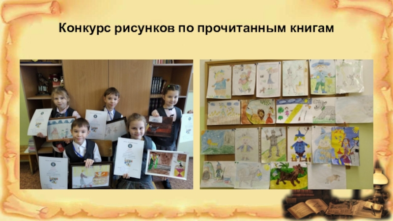 Слайд 19Конкурс рисунков по прочитанным книгам