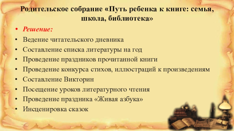 Родительское собрание «Путь ребенка к книге: семья, школа, библиотека»