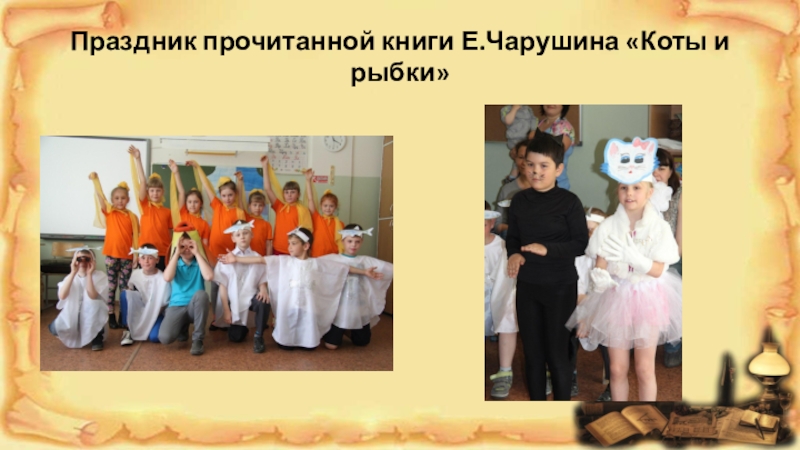 Слайд 15Праздник прочитанной книги Е.Чарушина «Коты и рыбки»