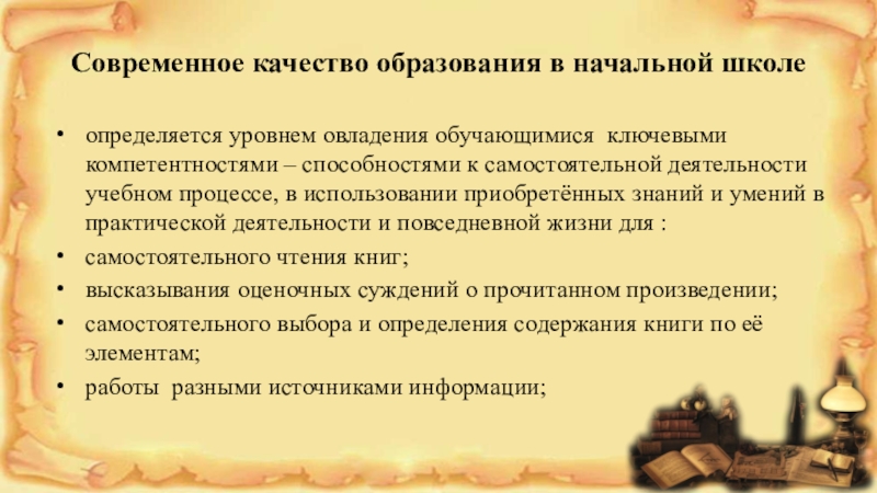 определяется уровнем овладения обучающимися ключевыми компетентностями