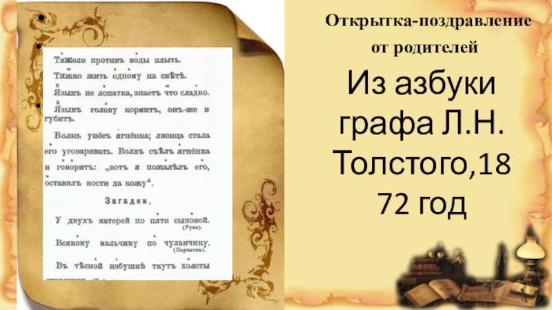 Слайд 22Из азбуки графа Л.Н.Толстого,1872 год
