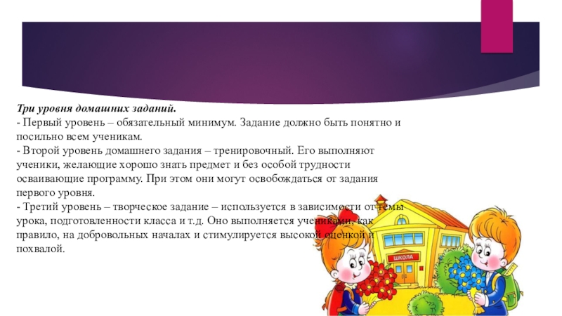 Слайд 8Три уровня домашних заданий.