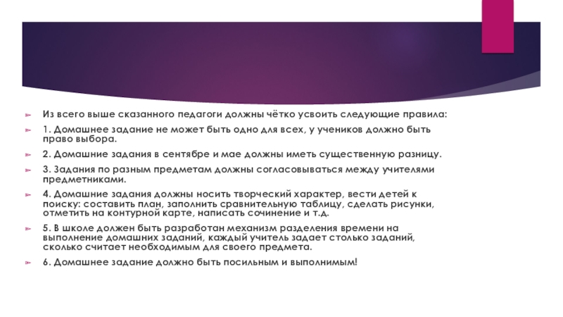 6. Домашнее задание должно быть посильным и выполнимым!