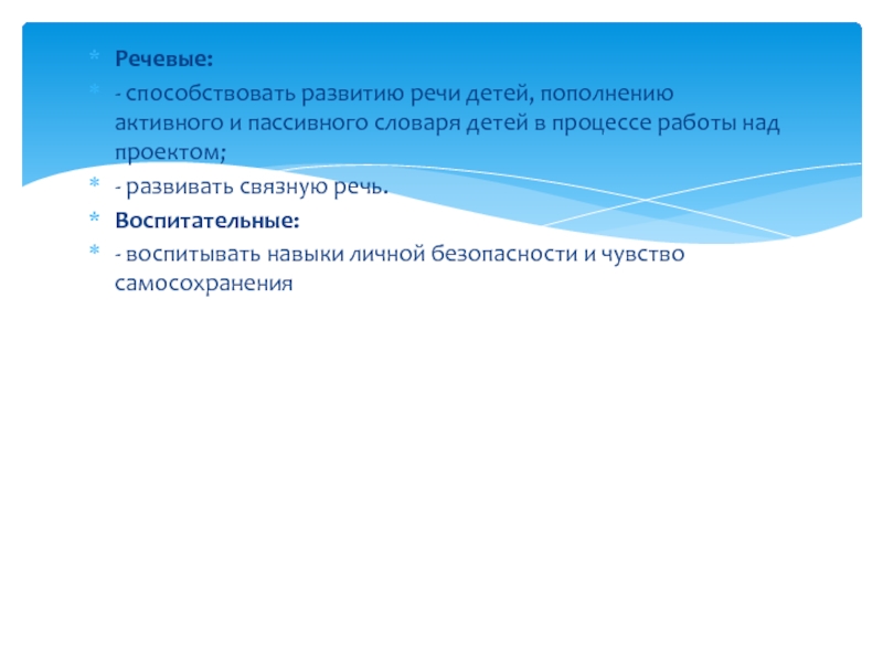 - воспитывать навыки личной безопасности и чувство самосохранения