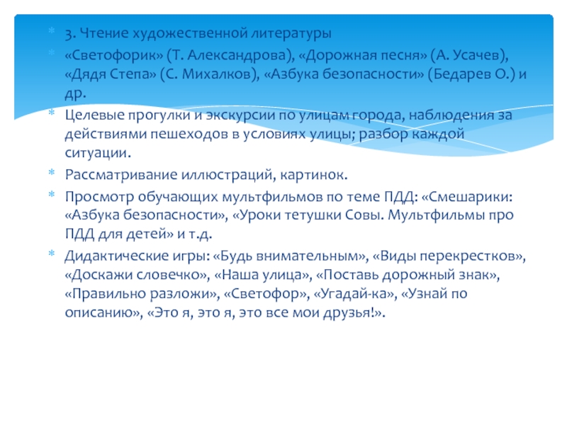 «Светофорик» (Т. Александрова), «Дорожная песня» (А. Усачев), «Дядя