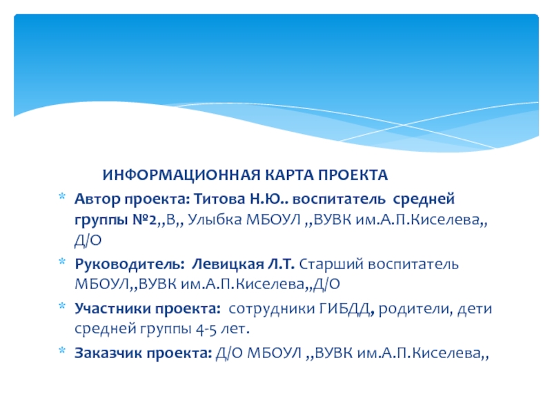 Слайд 2 ИНФОРМАЦИОННАЯ КАРТА ПРОЕКТА