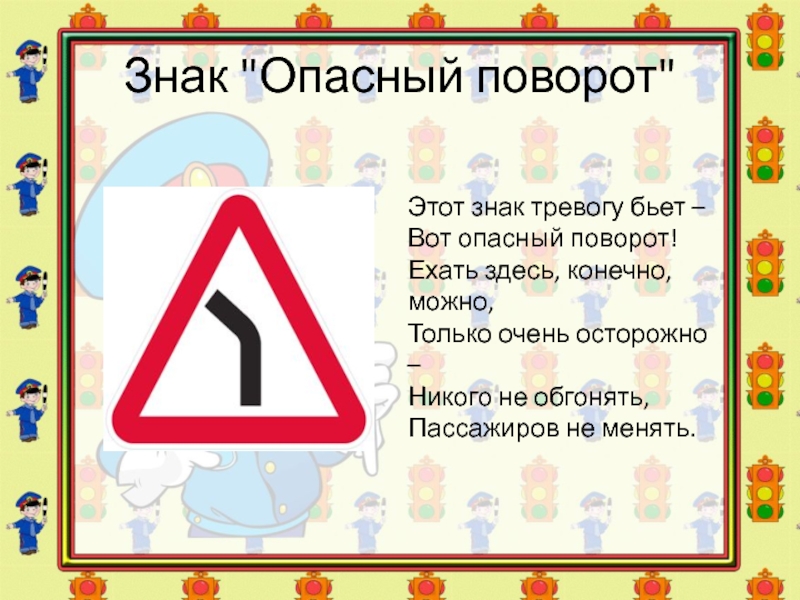 ("Опасный поворот".)