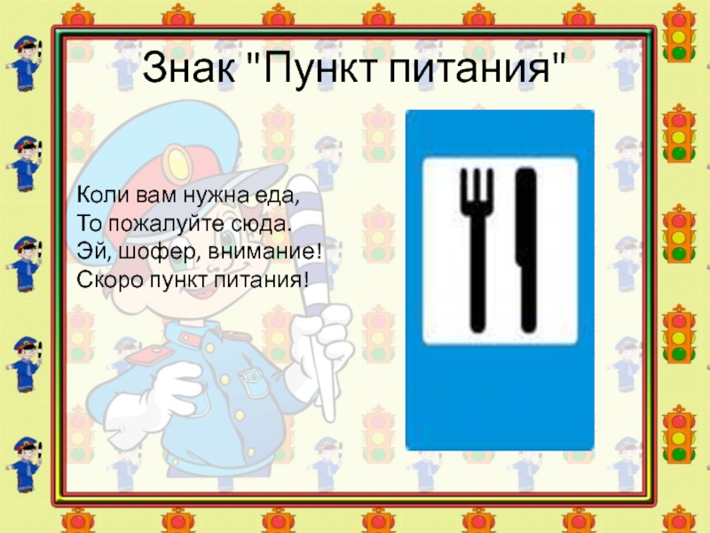 Слайд 28Знак "Пункт питания"