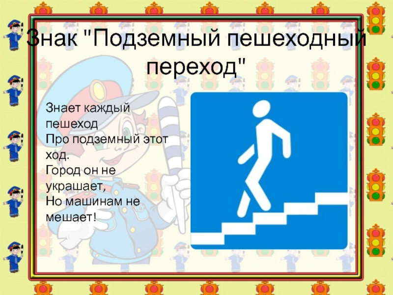 Слайд 16Знак "Подземный пешеходный переход"