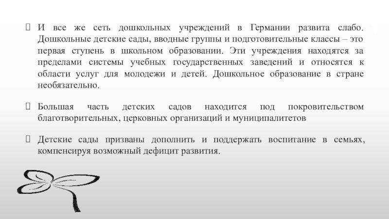 Слайд 8И все же сеть дошкольных учреждений в Германии развита слабо. Дошкольные
