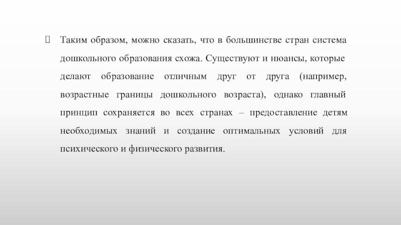 Слайд 12Таким образом, можно сказать, что в большинстве стран система дошкольного образования