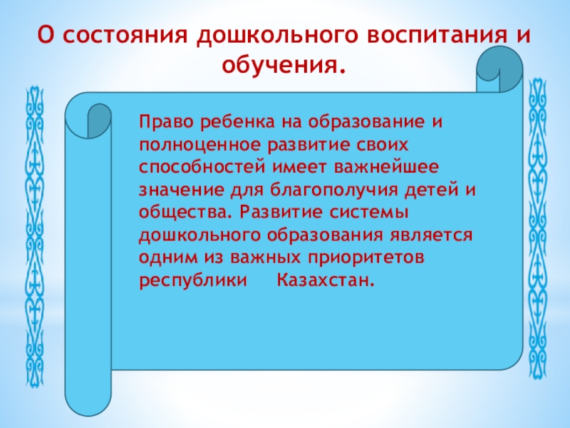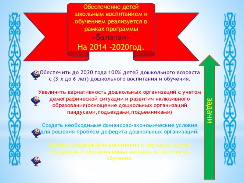 Обеспечить до 2020 года 100% детей дошкольного возраста с (3-х до 6 лет) дошкольного воспитания и обучения.