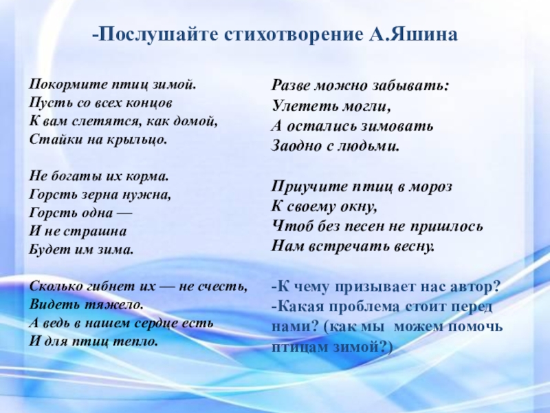 -Какая проблема стоит перед нами? (как мы можем помочь птицам зимой?)
