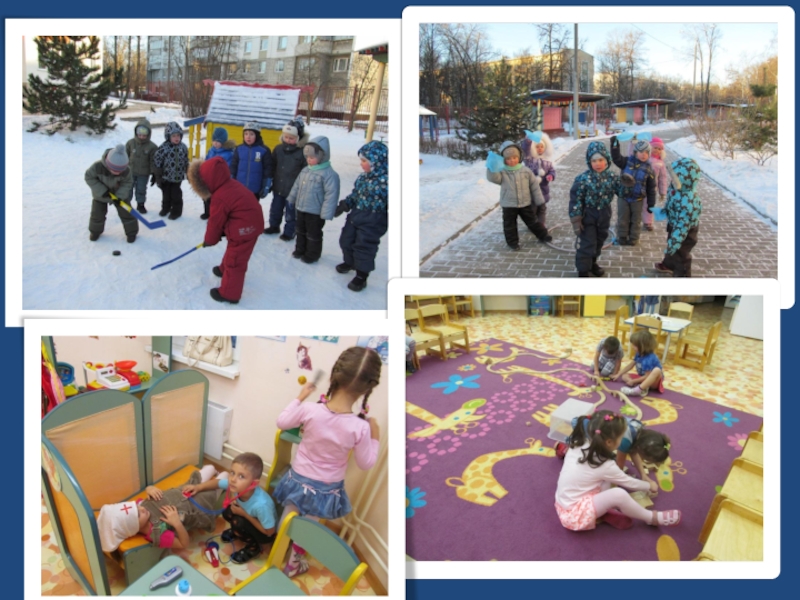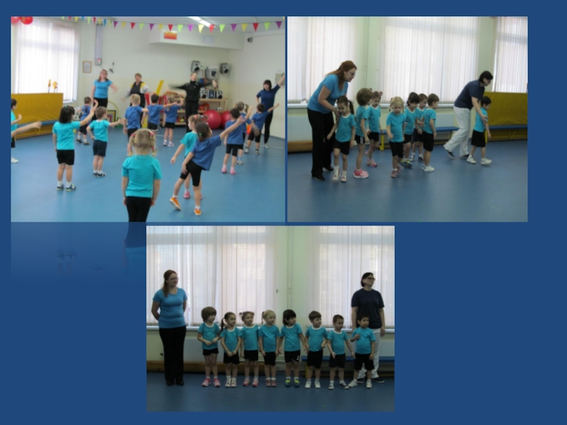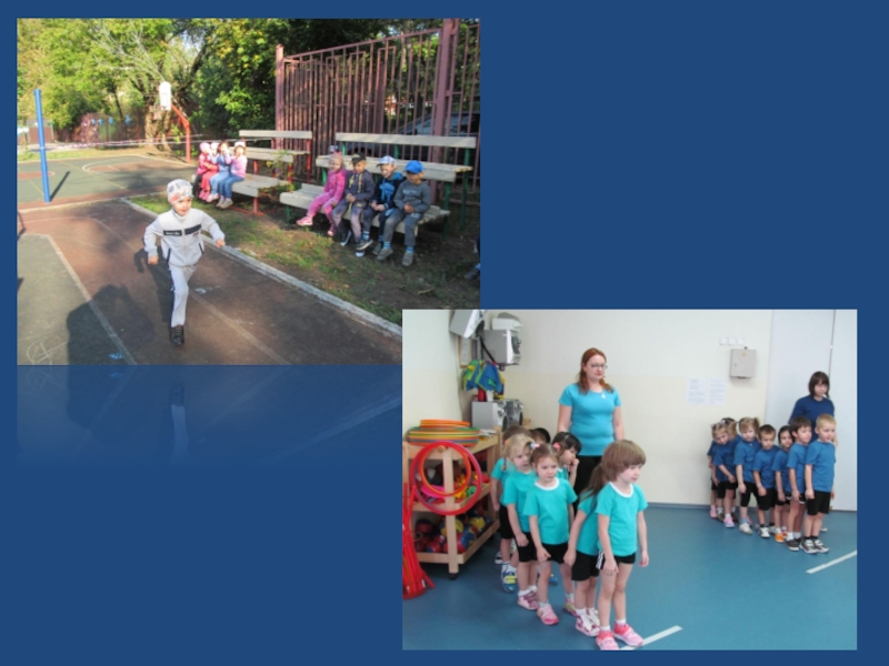 запечатлены моменты физкультурных занятий и соревнований детей в саду.