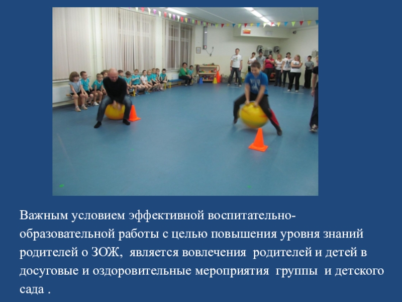о ЗОЖ, является вовлечения родителей и детей в досуговые и оздоровительные мероприятия группы и детского сада .