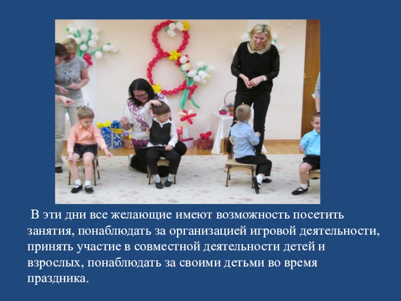 Слайд 21 В эти дни все желающие имеют возможность посетить занятия, понаблюдать