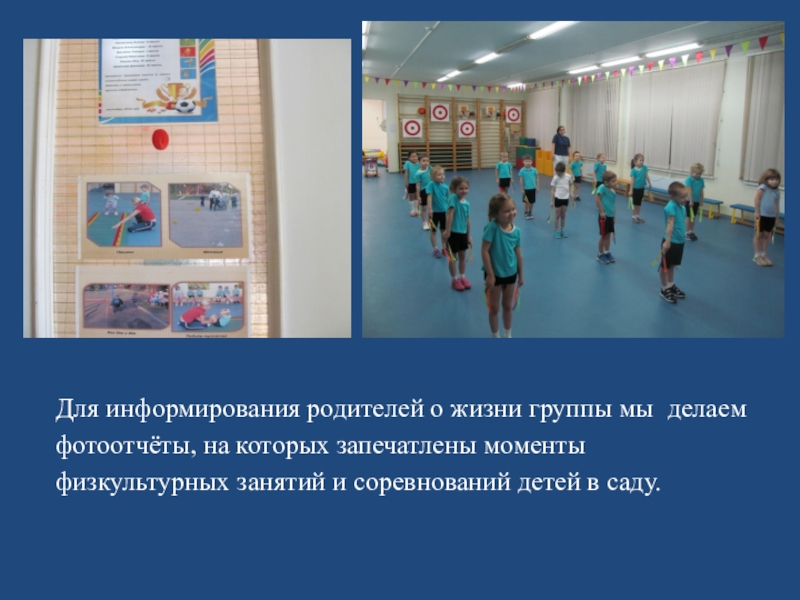 Слайд 8Для информирования родителей о жизни группы мы делаем фотоотчёты, на которых