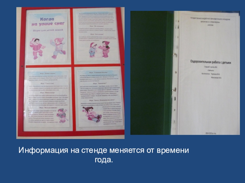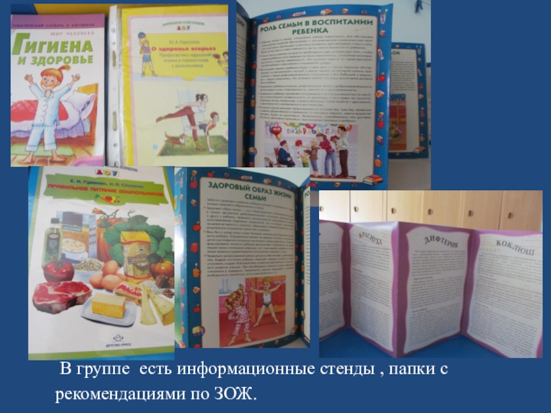 Слайд 15 В группе есть информационные стенды , папки с рекомендациями по