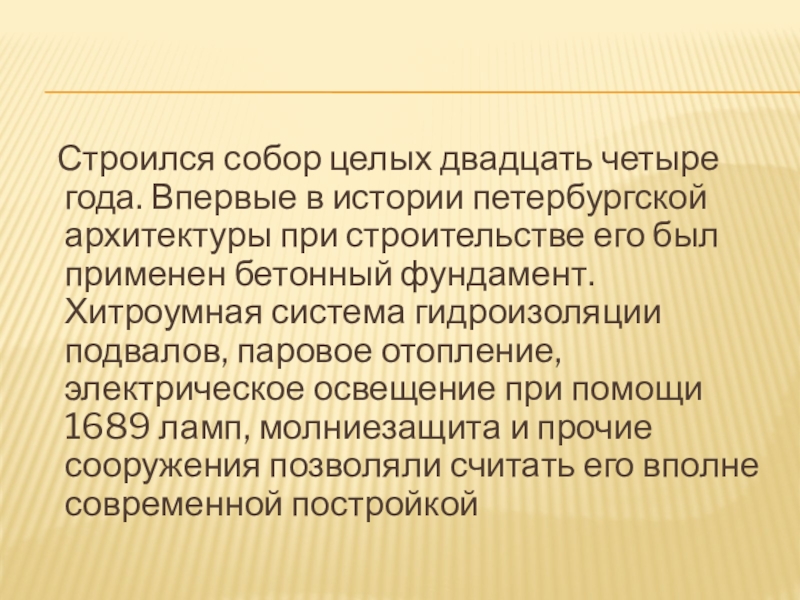 Строился собор целых двадцать четыре года. Впервые в истории петербургской архитектуры при строительстве его был