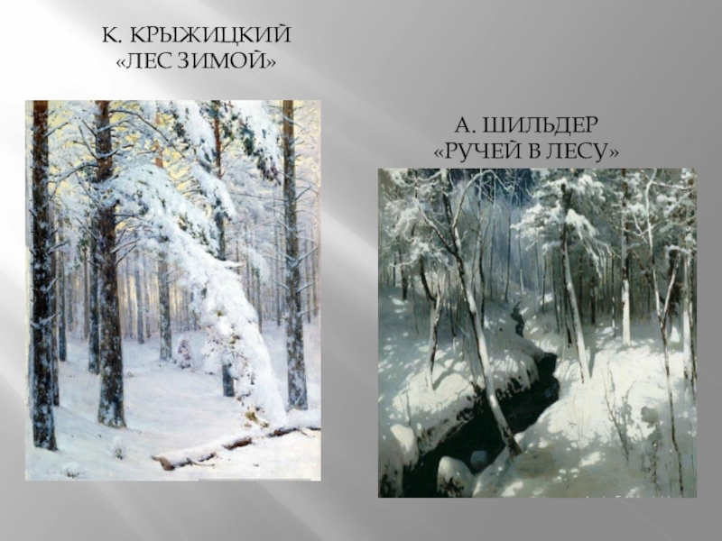 К. Крыжицкий «Лес зимой»А. Шильдер «Ручей в лесу»