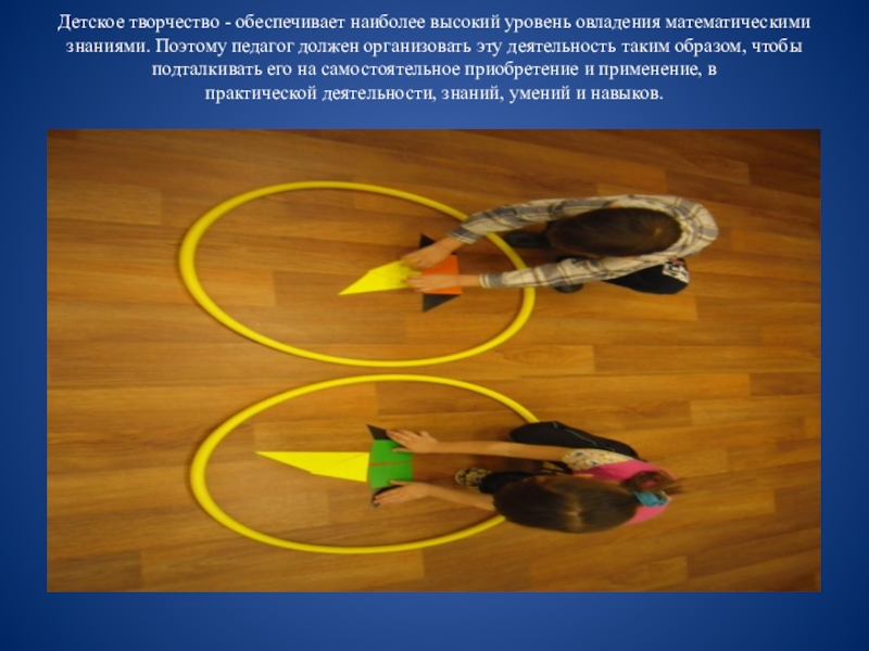 Слайд 9Детское творчество - обеспечивает наиболее высокий уровень овладения математическими знаниями. Поэтому педагог должен