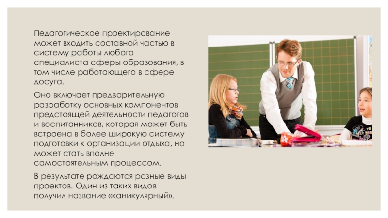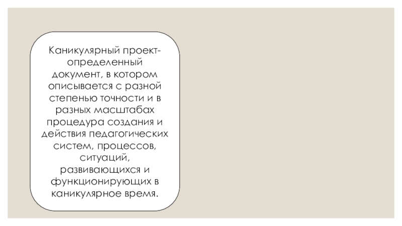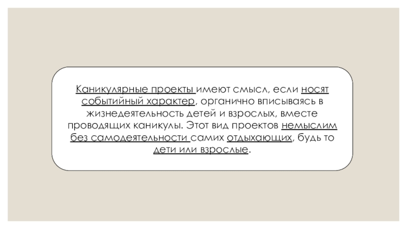 реализация в течение довольно короткого срока, например одной лагерной смены или каникул в целом.