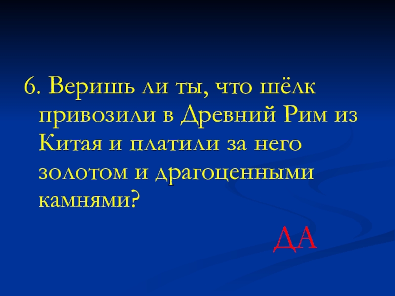 Слайд 356. Веришь ли ты, что шёлк привозили в Древний Рим из