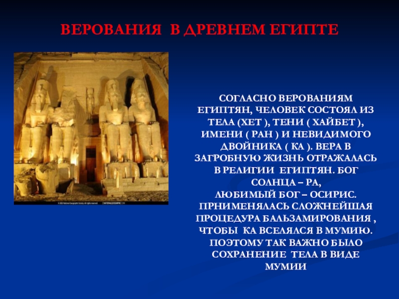 Слайд 16ВЕРОВАНИЯ В ДРЕВНЕМ ЕГИПТЕ
